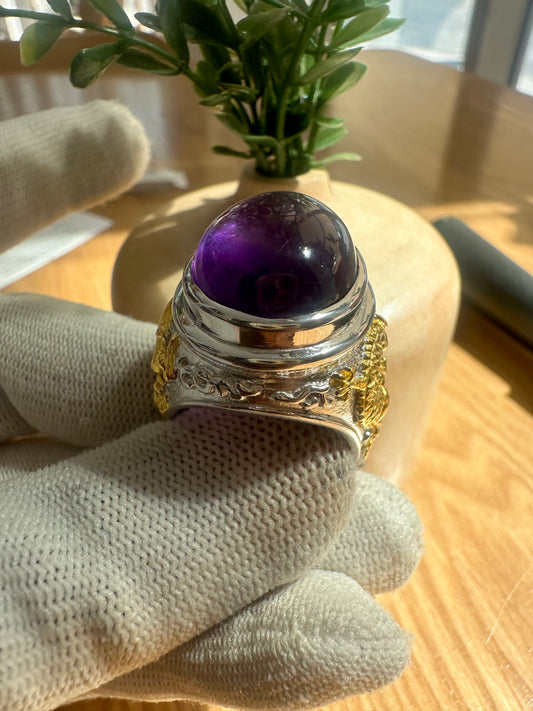 Men's 925 Silver Amethyst Ring with Dragon Motif – February Birthstone Jewelry