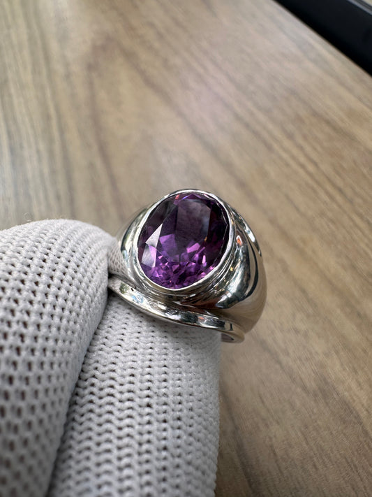 Men's Amethyst Ring in 925 Sterling Silver - February Birthstone