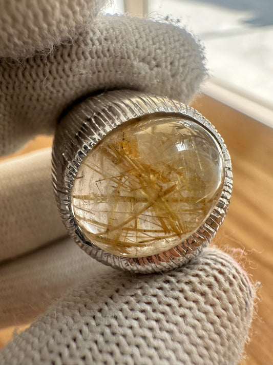 Men's 925 Silver Ring with Golden Rutile Quartz – Bold May Birthstone Jewelry for Him