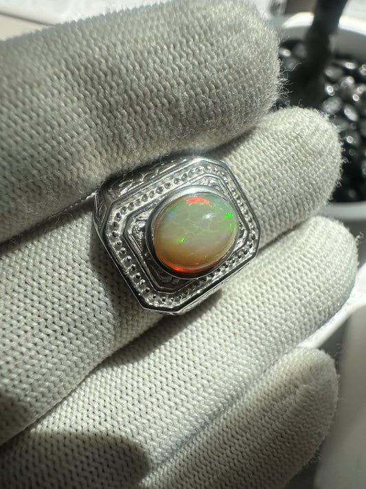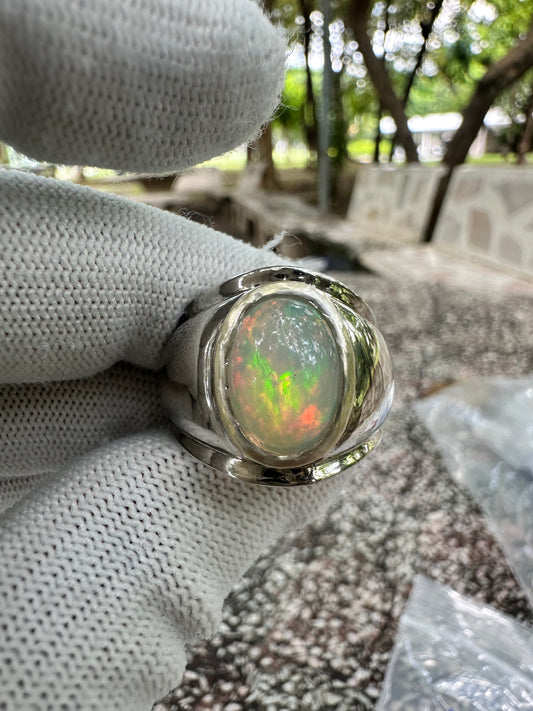 Ethiopian Opal Ring in 925 Sterling Silver - October Birthstone