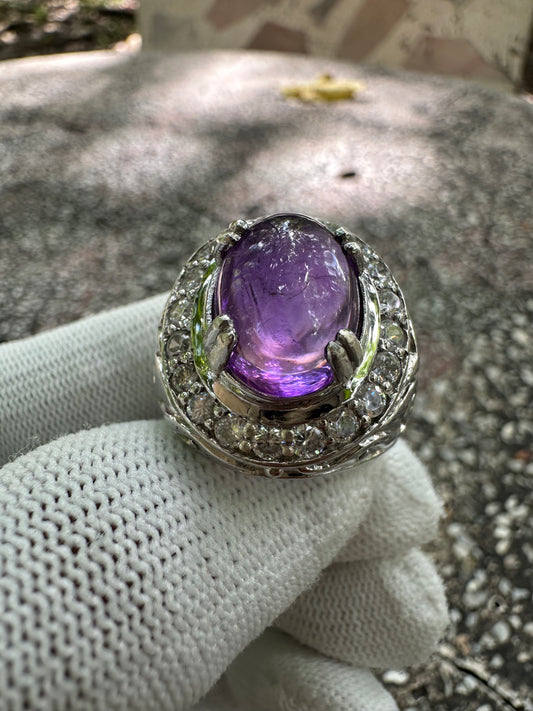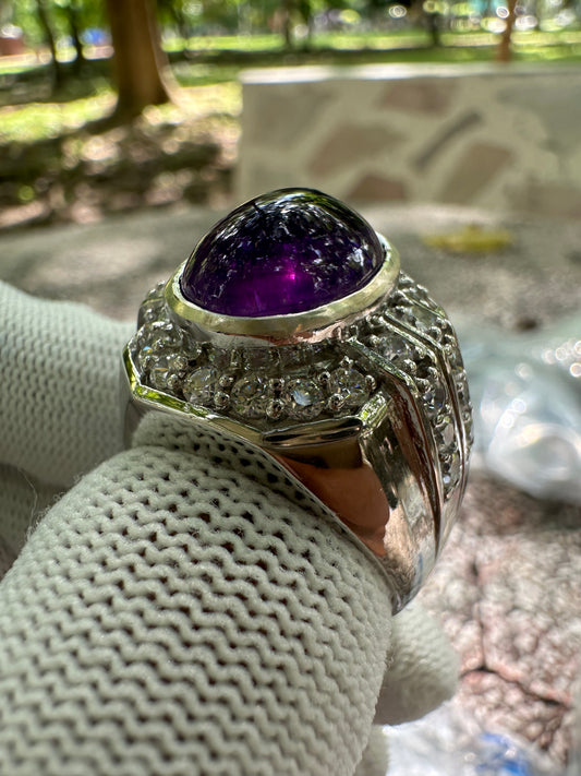 Men's Amethyst Ring in 925 Sterling Silver with Rhodium Plating – February Birthstone Statement Jewelry