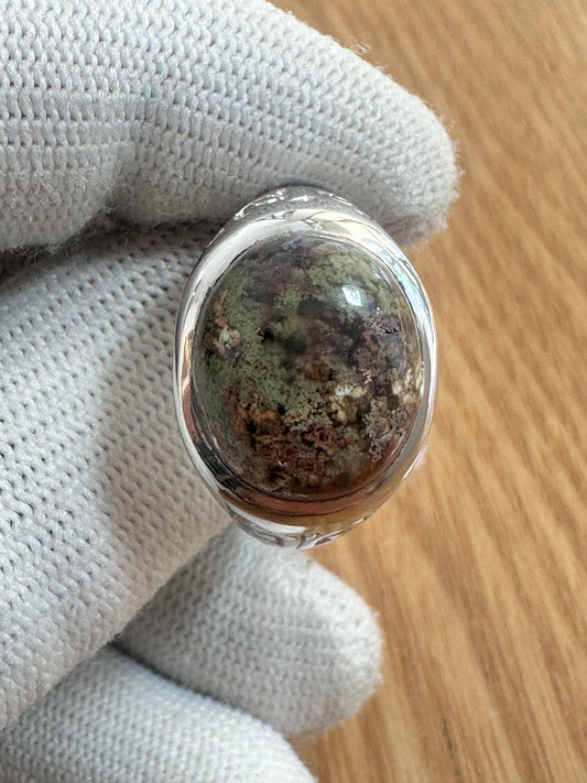 Men's Moss Agate Ring in 925 Silver May Birthstone – Natural Stone, Stylish & Durable Design