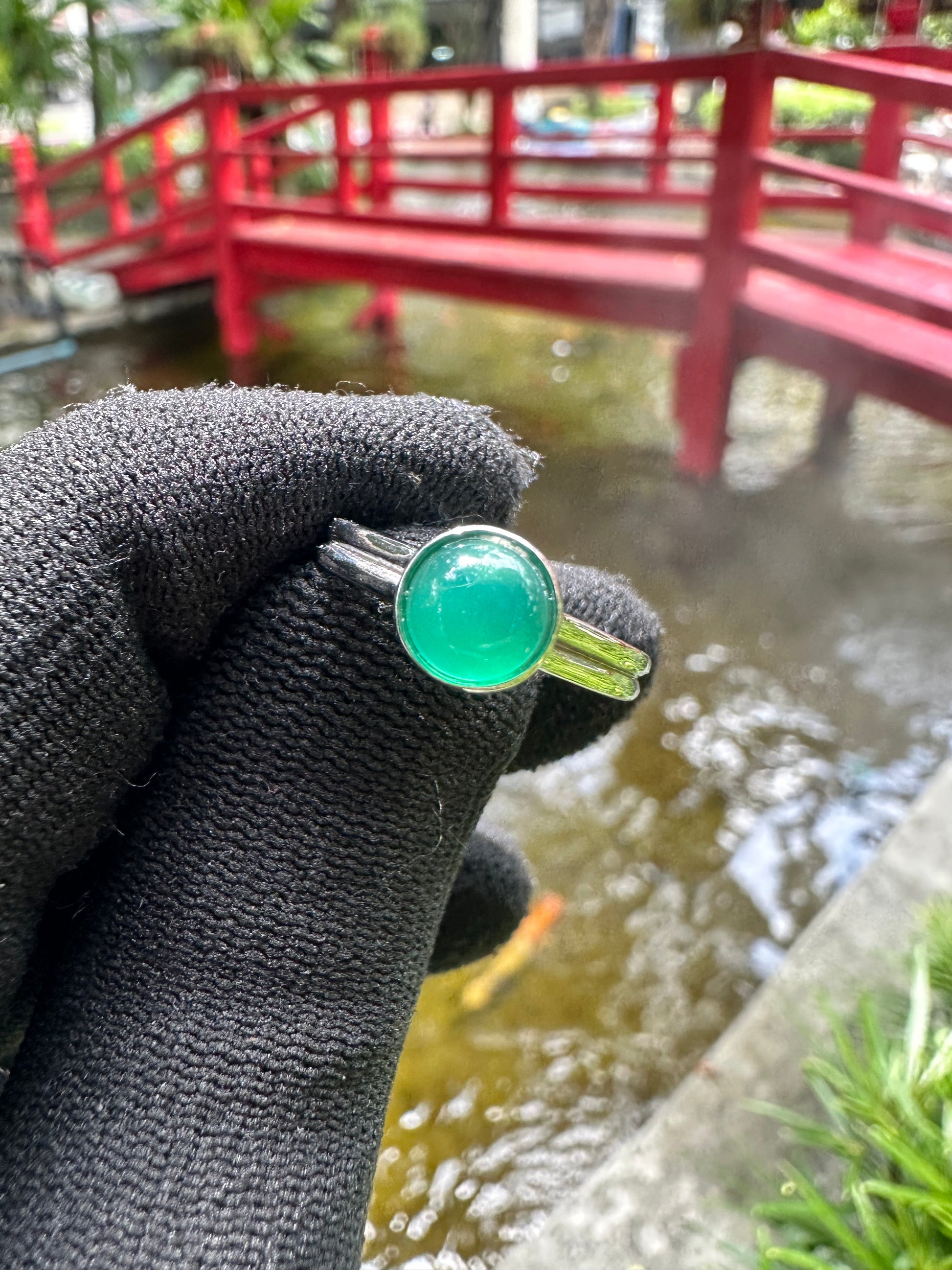 Elegant Minimalist Green Chalcedony Ring – 925 Sterling Silver