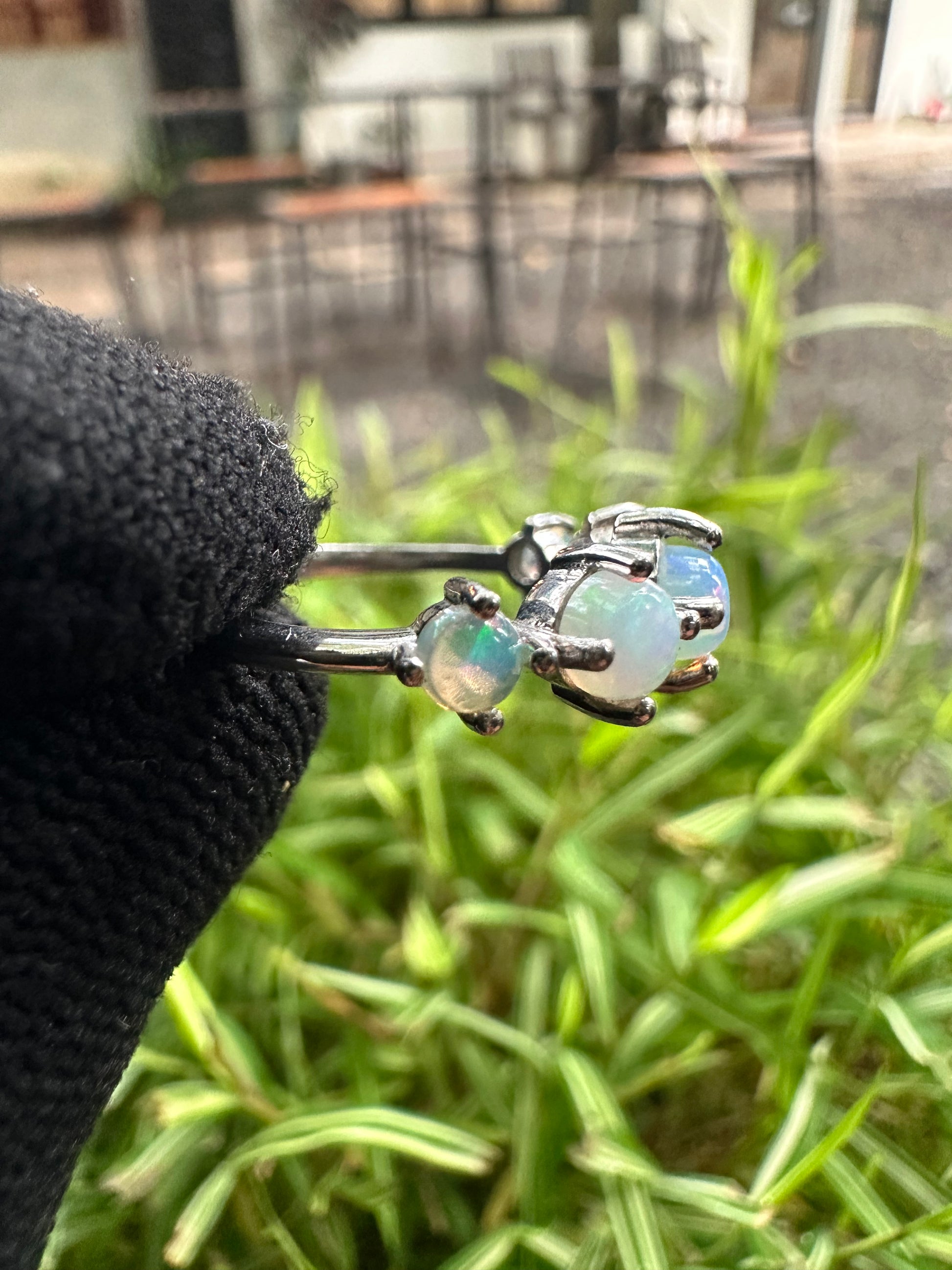 A tiny yet elegant Ethiopian Opal ring made for women who love minimalist jewellery. The natural full-fire Opal flashes beautiful rainbow colours and represents the October birthstone, symbolising hope, purity and emotional balance. Crafted in 925 Sterling Silver with a smooth White Gold Plated finish, this dainty ring is perfect for everyday wear and makes a thoughtful gift for her.